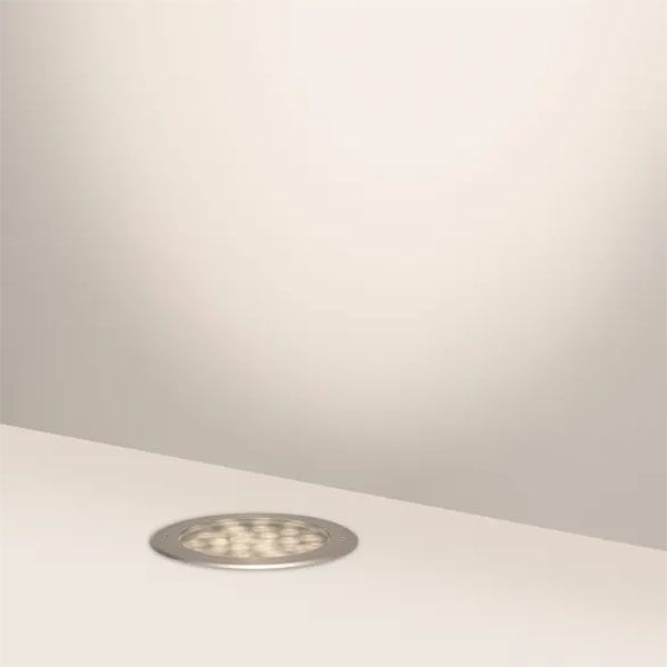 Встраиваемый светодиодный светильник для грунта и пола. Мощность 48Вт, световой поток 3250 лм, цвет дневной 4000К. CRI(Ra)>80, угол 10°. Круглый влагозащищенный корпус IP67, нержавеющая сталь. Экран закалённое стекло. Питание 230В, 48Вт. Размер DxH O260x150мм. Установка в отверстие DxH O239x144мм.