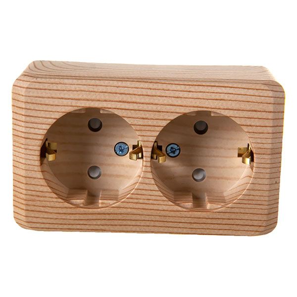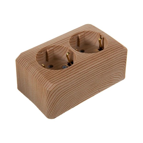 Штепсельная розетка двойная накладная ЭТЮД 16A 250V PA16-008D с/з со шторками сосна