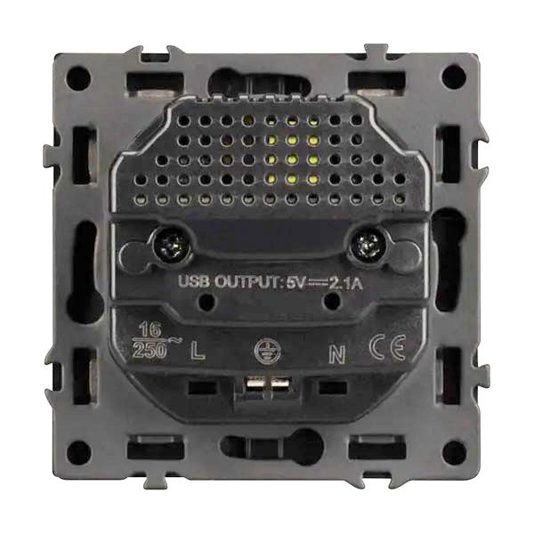 Механизм розетки с заземлением на 1 пост и 2USB Type A порта. Цвет - черный оникс, с Soft-Touch покрытием. Без фронтальной рамки. Уровень пылевлагозащиты IP20. Розетка устанавливается в стандартный подрозетник круглого сечения диаметром 60мм. Габаритные размеры: длина 71 мм, ширина 71 мм, высота 53 мм. Гарантийный срок 10 лет.