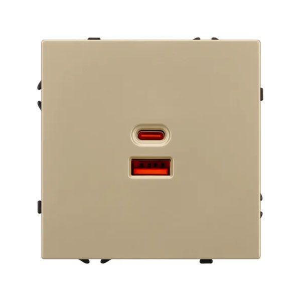Механизм розетки с быстрой USB зарядкой на 2 порта. Цвет - золотой песок, с Soft-Touch покрытием. Без фронтальной рамки. Уровень пылевлагозащиты IP20. Тип подключаемого разъема - USB Type A + Type C. Устанавливается в стандартный подрозетник круглого сечения диаметром 60мм. Габаритные размеры: длина 71 мм, ширина 71 мм, высота 42 мм. Гарантийный срок 10 лет.