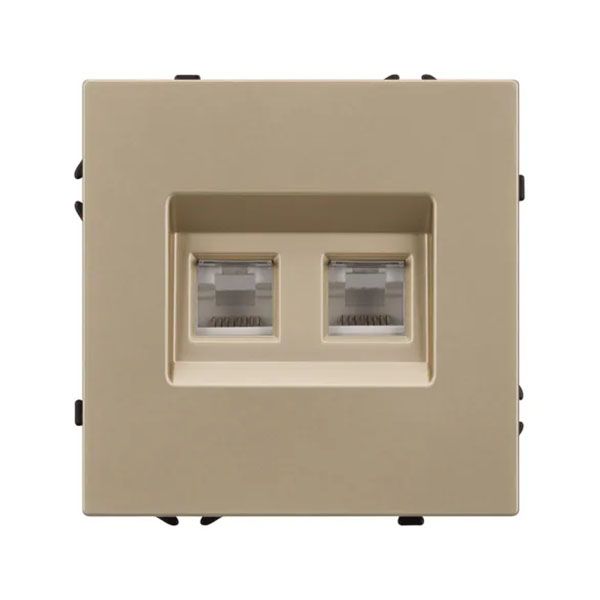 Механизм компьютерной розетки на 2 поста 6-й категории. Цвет - золотой песок, с Soft-Touch покрытием. Без фронтальной рамки. Уровень пылевлагозащиты IP20. Тип подключаемого разъема - RJ45. Розетка устанавливается в стандартный подрозетник круглого сечения диаметром 60мм. Габаритные размеры: длина 71 мм, ширина 71 мм, высота 42 мм. Гарантийный срок 10 лет.