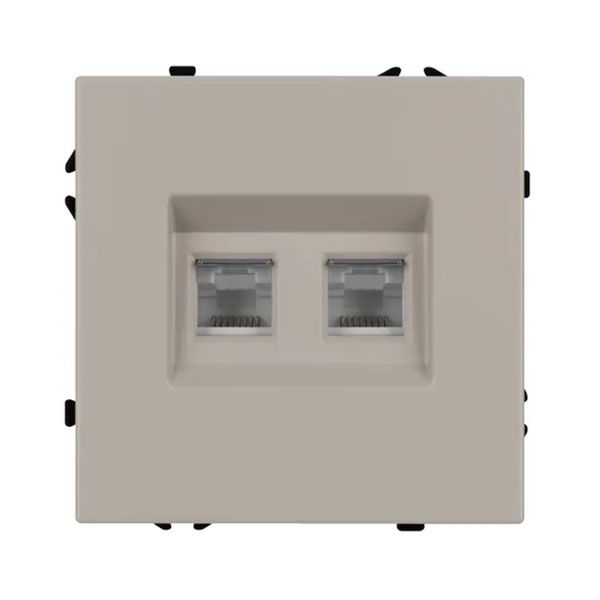 Механизм компьютерной розетки на 2 поста 6-й категории. Цвет - кашемир, с Soft-Touch поверхностью. Без фронтальной рамки. Уровень пылевлагозащиты IP20. Тип подключаемого разъема - RJ45. Розетка устанавливается в стандартный подрозетник круглого сечения диаметром 60мм. Габаритные размеры: длина 71 мм, ширина 71 мм, высота 42 мм. Гарантийный срок 10 лет