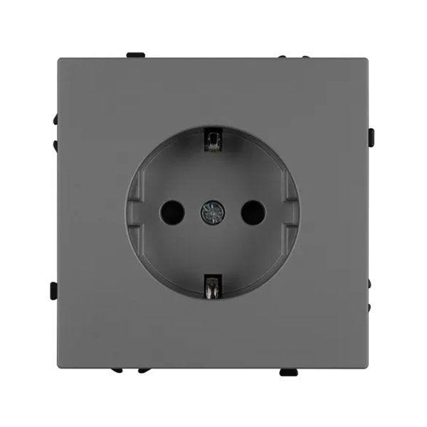 Механизм розетки с заземлением на 1 пост. Цвет - серый базальт, с Soft-Touch покрытием. Без фронтальной рамки. Уровень пылевлагозащиты IP20. Розетка устанавливается в стандартный подрозетник круглого сечения диаметром 60мм.