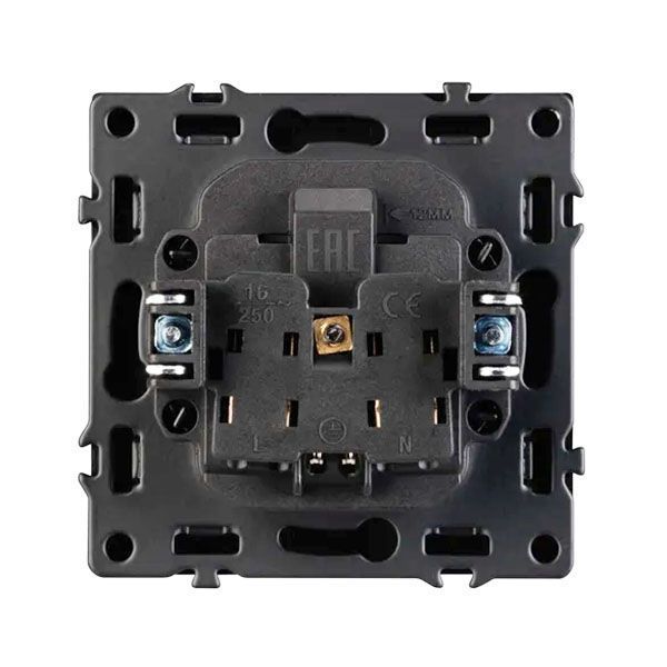 Розетка оснащена заземляющими контактами и защитными шторками, обеспечивая надежное и безопасное подключение электроприборов. Соединение посредством быстрозажимных контактов, позволяет надежно подсоединить механизм розетки к питающим элементам, минимизируя затраченное время на монтаж. А усиленные распорные лапки двойного захвата надежно фиксируют механизм в установочном подрозетнике круглого сечения диаметром 60мм.
