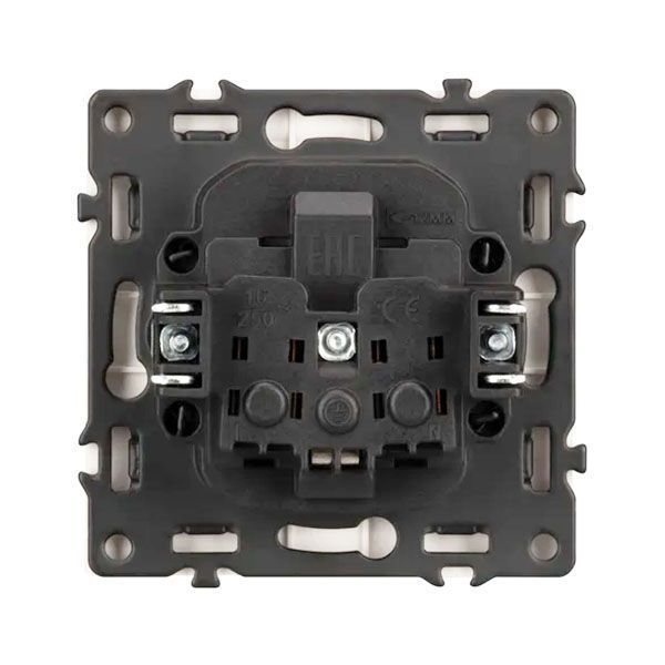Розетка оснащена заземляющими контактами и защитными шторками, обеспечивая надежное и безопасное подключение электроприборов. Соединение посредством быстрозажимных контактов, позволяет надежно подсоединить механизм розетки к питающим элементам, минимизируя затраченное время на монтаж. А усиленные распорные лапки двойного захвата надежно фиксируют механизм в установочном подрозетнике круглого сечения диаметром 60мм.
