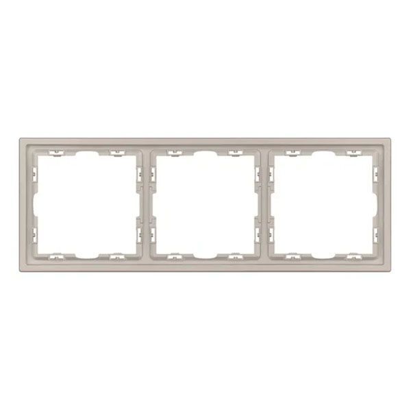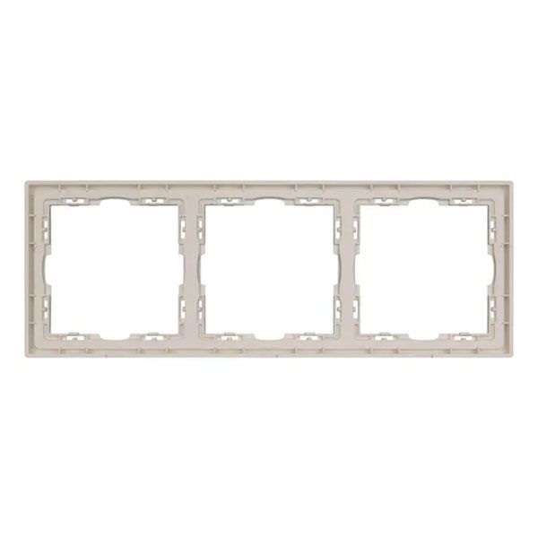 Рамка пластиковая на 3 поста, под встраиваемый механизм. Цвет - кашемир, с Soft-Touch поверхностью. Среднего уровня герметичности IP20. Ориентация монтажа горизонтальная.