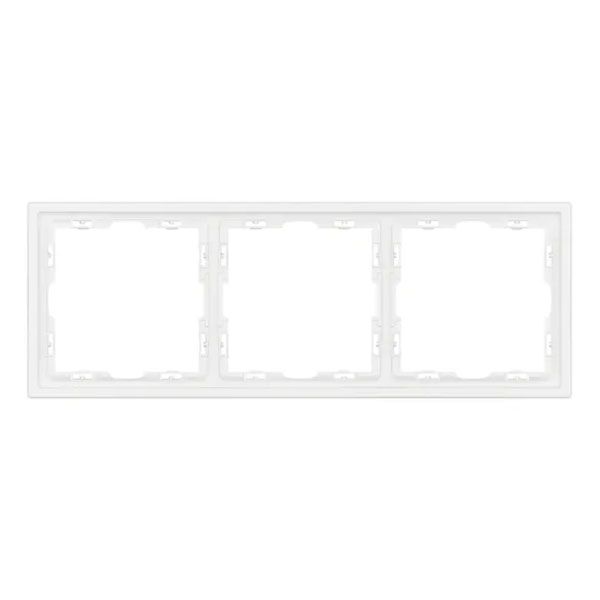 Рамка пластиковая на 3 поста, под встраиваемый механизм. Цвет - белый кварц, с Soft-Touch покрытием. Среднего уровня герметичности IP20. Ориентация монтажа горизонтальная.