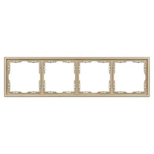 Рамка пластиковая на 4 поста, под встраиваемый механизм. Цвет - золотой песок, с Soft-Touch покрытием. Среднего уровня герметичности IP20. Ориентация монтажа горизонтальная.