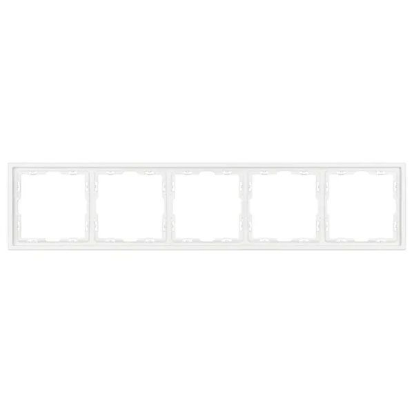 Рамка пластиковая на 5 постов, под встраиваемый механизм. Цвет - белый кварц, с Soft-Touch покрытием. Среднего уровня герметичности IP20. Ориентация монтажа горизонтальная.