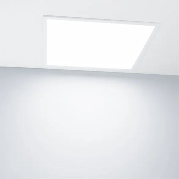 Светодиодная панель с прямой засветкой (backlit). Мощность 34 Вт, св. поток 4200 лм, 120-125 лм/Вт, с изменяемой цветовой температурой 3000K/4000К/6000K (встроенный переключатель), CRI>92, угол 120°, напряжение питания 230 В. Белый квадратный корпус из алюминия, экран PS, степень защиты IP40. Размер: длина 595 мм, ширина 595 мм, высота 32 мм. Монтаж встраиваемый, установочное отверстие длина 575 мм, ширина 575 мм. Драйвер 25-40 В, 870 мА, пульсация <1%.
