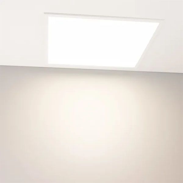 Светодиодная панель с прямой засветкой (backlit). Мощность 34 Вт, св. поток 4380 лм, 128 лм/Вт, дневной 4000K, CRI>92, угол 120°, напряжение питания 230 В. Белый квадратный корпус из алюминия, экран PS, степень защиты IP40. Размер: длина 595 мм, ширина 595 мм, высота 32 мм. Монтаж встраиваемый, установочное отверстие длина 575 мм, ширина 575 мм. Драйвер 25-40 В, 870 мА, пульсация <0.5%.