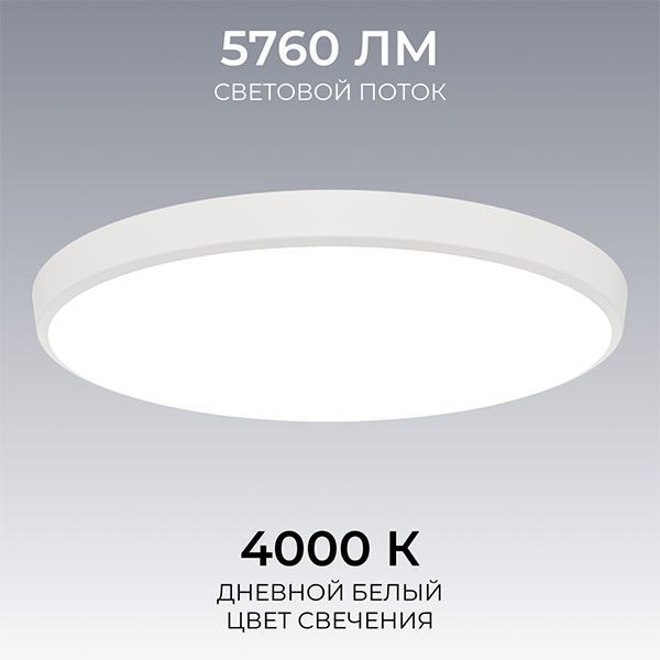 При энергопотреблении 72 Вт светильник излучает мощный световой поток 5760 лм, достаточный для эффективного освещения площади до 22 м?. Дневной белый свет (4000 К) в сочетании с высоким индексом цветопередачи (CRI>80) обеспечивает естественное восприятие интерьера, а низкий коэффициент пульсации предотвращает усталость глаз.