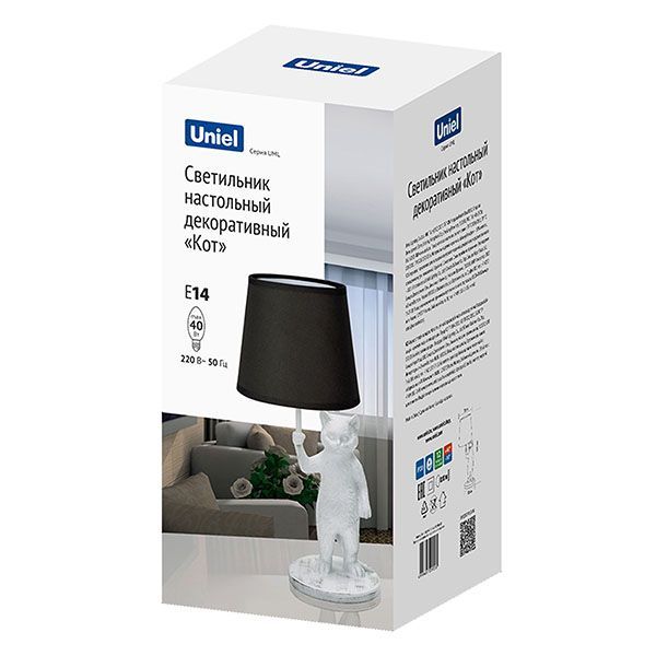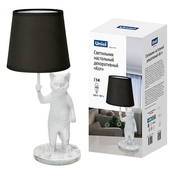 светильник настольный без лампы UML-B465 E14 WHITE-BLACK UL-00013445 "Кот" белый