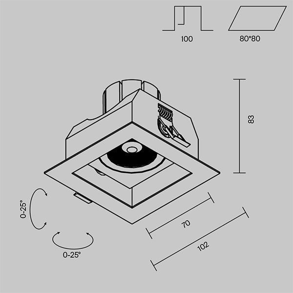 Встраиваемый светильник 12W Белый-MIX DL008-12W2.7-3-4K-W Металл Модерн/Metal Modern 50deg 230V квадратный белый