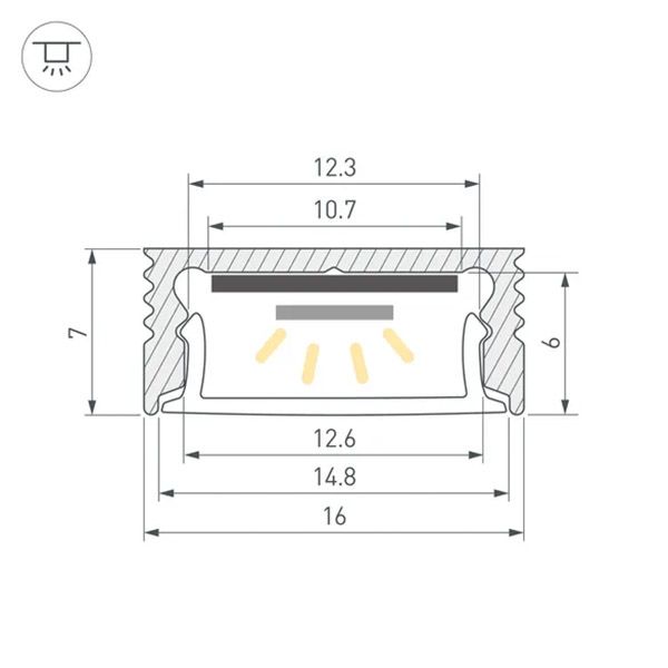Алюминиевый профиль для светодиодных лент и линеек. Цвет - черный RAL9005 (порошковая окраска). Габаритные размеры (L?W?H): 2000x16x7 мм. Ширина площадки для ленты 10,7 мм. Экраны, заглушки и другие аксессуары приобретаются отдельно. Цена за 1 метр.