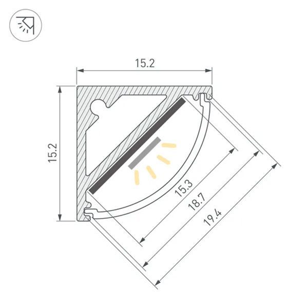 Алюминиевый анодированный угловой профиль для светодиодных лент и линеек. Габаритные размеры (L?W?H): 3000x15,2x15,2 мм. Ширина площадки для ленты 15,3 мм. Экраны, заглушки и другие аксессуары приобретаются отдельно. Цена за 1 метр.