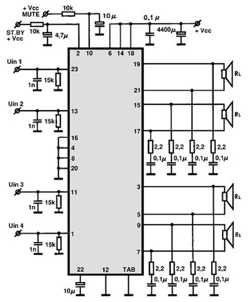 Четырёхканальный усилитель низкой частоты, 4 х 18Вт