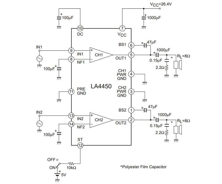 Двухканальный усилитель мощности низкой частоты, 2 х 20 Вт ( 10-30 В / 4 Ом )
