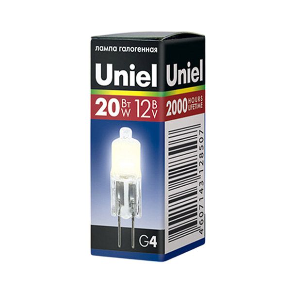 лампа галогенная капсульная G4 JC 20W Uniel JC-12/20/G4 CL 12V 00481