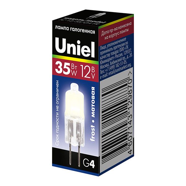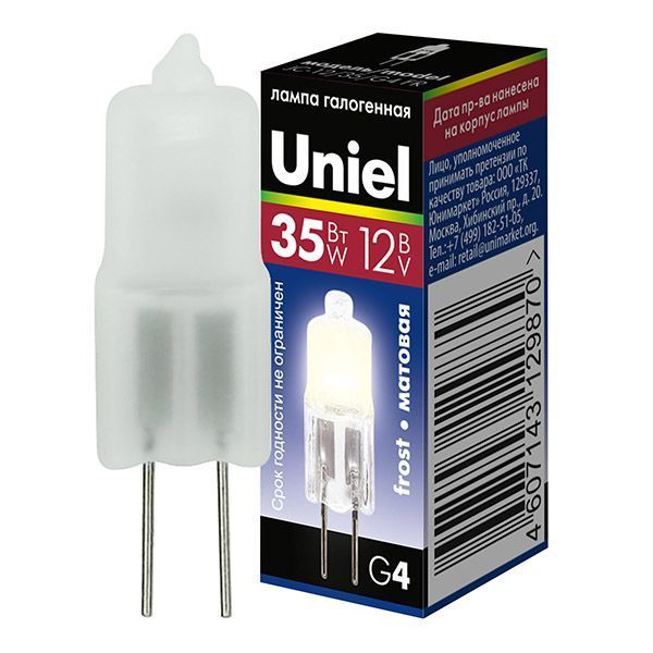 лампа галогенная капсульная G4 JC 35W Uniel JC-12/35/G4 FR 12V 00824